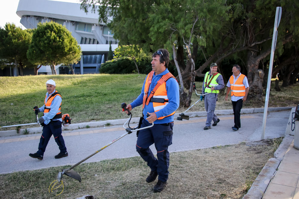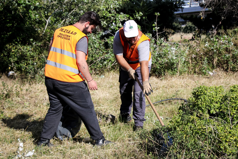 Στη συνέχεια μικτά κλιμάκια εργαζομένων ΠΕΣΥΔΑΠ και ΣΕΦ επιχείρησαν με στοχευμένες παρεμβάσεις σε σημεία πρασίνου με αποψιλώσεις και απομάκρυνση φυτικής ύλης και στερεών αποβλήτων.