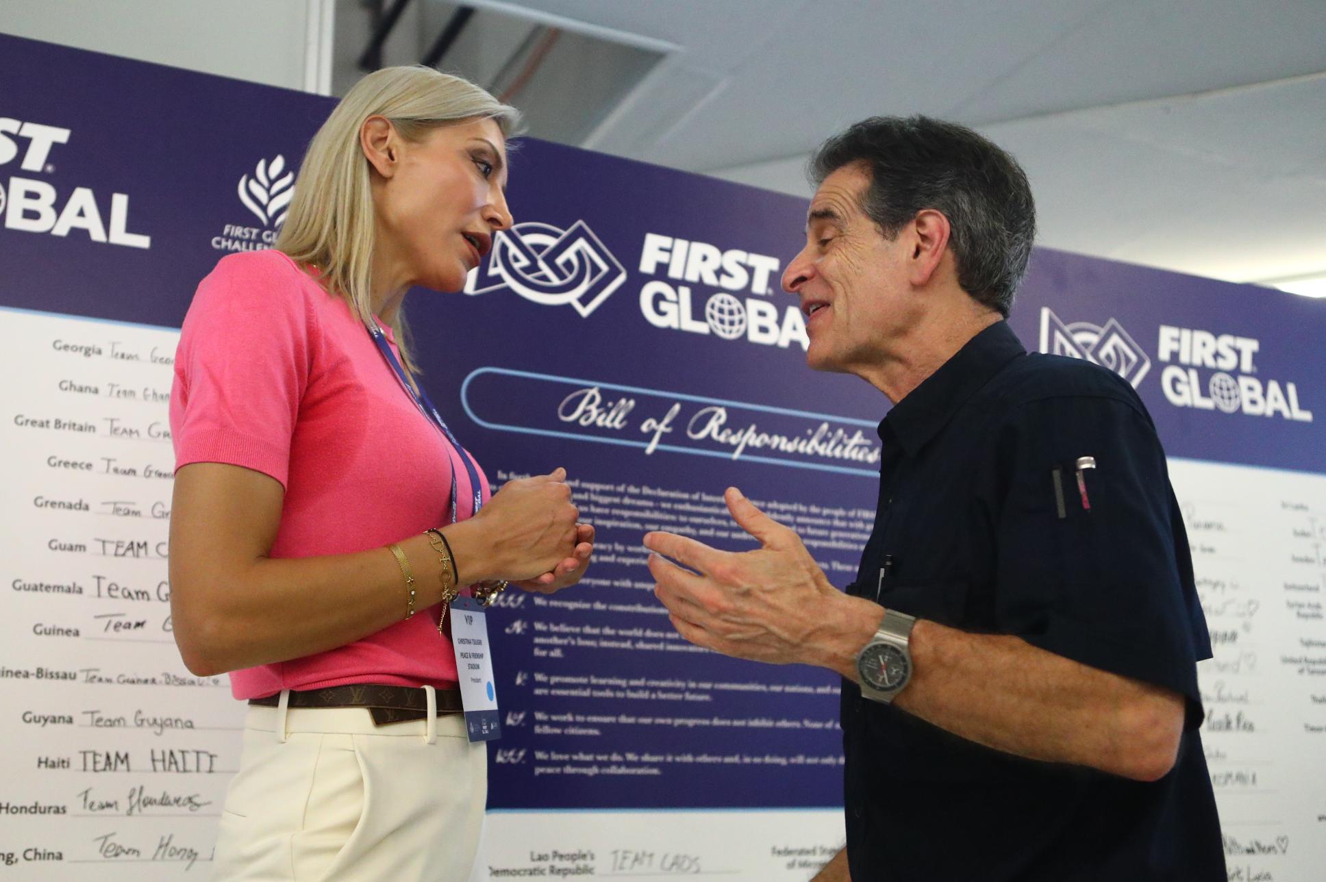 Ο Πρωθυπουργός, συνοδευόμενος από τον υφυπουργό Ψηφιακής Διακυβέρνησης, Κωνσταντίνο Κυρανάκη, τον ιδρυτή του First Global Challenge Dean Kamen, τον Δήμαρχο Πειραιά Γιάννη Μώραλη αλλά και την πρόεδρο του Σταδίου Ειρήνης και Φιλίας, Χριστίνα Τσιλιγκίρη και ξεναγήθηκε στις εγκαταστάσεις του ΣΕΦ και επισκέφθηκε τα περίπτερα των συμμετεχόντων ομάδων. Κατά τη διάρκεια της επίσκεψής του ο κ. Μητσοτάκης είχε την ευκαιρία να συνομιλήσει με τους νέους επιστήμονες που εκπροσωπούν τις χώρες τους, εκφράζοντας τον θαυμασμό του για τις πρωτοποριακές τους ιδέες και τεχνολογικές λύσεις που έχουν αναπτύξει, καθώς και την αποφασιστικότητά τους να συνεισφέρουν σε ένα βιώσιμο μέλλον.