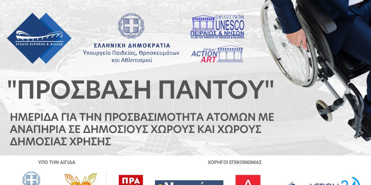 Η 3η ημερίδα «Πρόσβαση Παντού» συνδιοργανώνεται από το Στάδιο Ειρήνης και Φιλίας με την ΟΥΝΕΣΚΟ Πειραιώς και Νήσων, στο πλαίσιοτης παγκόσμιας Ημέρας Αυτισμού, καθώς και της εναρμόνισης της ελληνικής νομοθεσίας με την Οδηγία (EE) του Ευρωπαϊκού Κοινοβουλίου και του Συμβουλίου της 17ης Απριλίου 2019 σχετικά με τις απαιτήσεις προσβασιμότητας προϊόντων και υπηρεσιών. Η ημερίδα θα λάβει χώρα την αύριο και ώρα 17.30, στο Φουαγιέ της αίθουσας Μελίνας Μερκούρη στο ΣΕΦ.