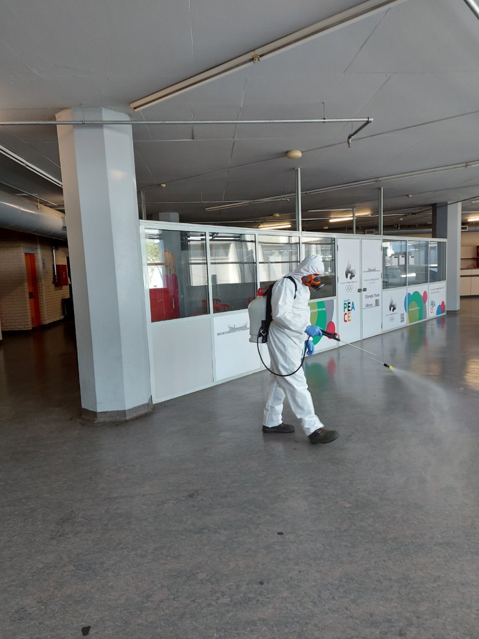 Με ύψιστη προτεραιότητα τη διασφάλιση της υγείας των εργαζομένων, αθλητών και επισκεπτών ενισχύονται σε τακτά διαστήματα οι απολυμάνσεις εντός και εκτός του Σταδίου.