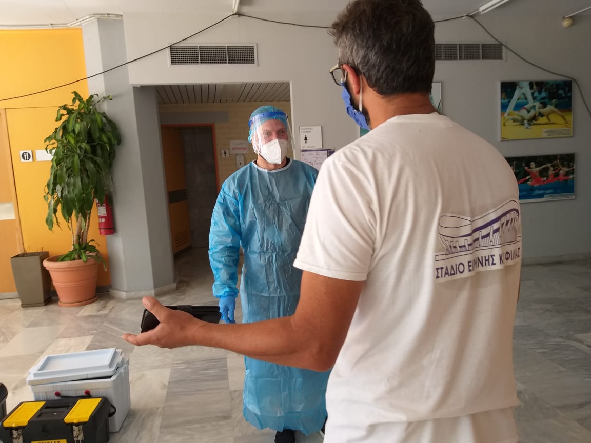 Κλιμάκιο Κινητής μονάδας του Εθνικού Οργανισμού Δημόσιας Υγείας (ΕΟΔΥ), στο πλαίσιο της πρόληψης μετάδοσης του κορονοϊού, πραγματοποίησε σήμερα μοριακό έλεγχο ανίχνευσης covid-19 σε εργαζόμενους του Σταδίου Ειρήνης και Φιλίας.